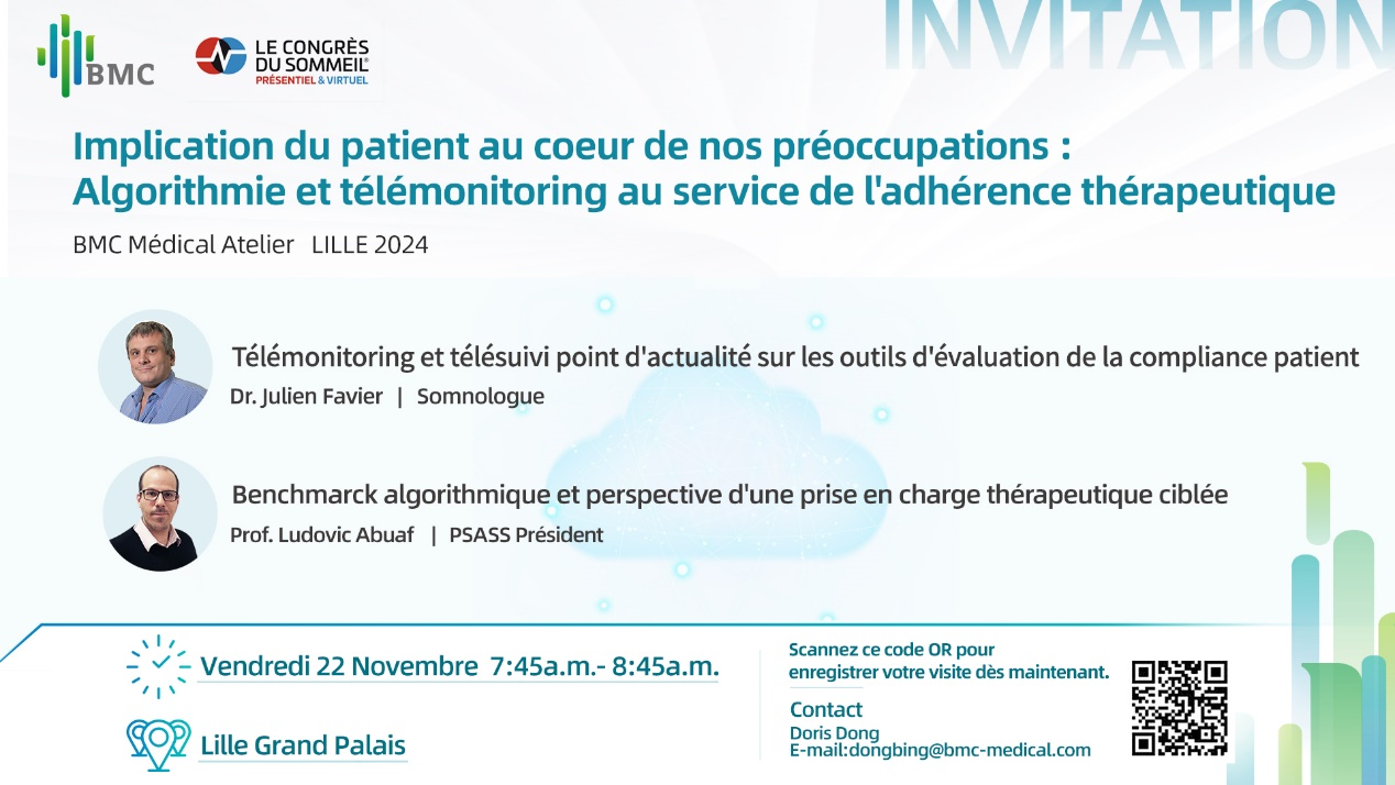 Nous sommes ravis d’annoncer notre participation au SFRMS Le Congrès du Sommeil au Lille Grand Palais du 20 au 22 novembre 2024. Nous vous invitons cordialement à nous rendre visite au stand 23 pour explorer ensemble l’avenir de la santé du sommeil et respiratoire.